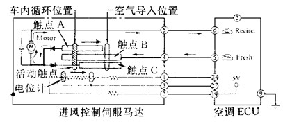 图2 制冷剂的压力-温度变化状态图 液态的R—12如在一定温度下降低压力,就会蒸发成气体。在这气化过程中需要从周围空气中吸取一定热量,使周围气温下降而实现制冷效应。制冷循环过程如图所示。 基本的制冷系统由制冷剂和四大机件:压缩机、冷凝器、膨胀阀、蒸发器所组成。制冷循环工作原理是这样的:低温低压的液态制冷剂流入蒸发器,从车厢空气中夺走蒸发所需的热量(车厢内空气因此而冷却),流出蒸发器时,制冷剂因吸热而由液态气化成低温低压的气态。压缩机吸入低温低压的气态制冷剂后,将其压缩成高温高压气态制冷液,流入冷凝器散热冷凝成中温高压液态制冷液,再流入膨胀阀,经膨胀阀膨胀减压后,又变为低温低压的液压制冷剂,重新回到蒸发器入口,完成了制冷剂由液态吸热气化成气态,又由气态放热冷凝成液态的工作循环。 由此可见,制冷循环应包括以下四个变化过程。 压缩过程:压缩机将蒸发器出口处的低温(约0℃)、低压(约0.15Mpa)的气态制冷剂增压为高温(70~80℃)、高压(1.5MPa左右)的气态过热制冷剂,流入冷凝器冷却降温。 冷凝过程:过热气态制冷剂进入冷凝器散热冷凝为液态制冷剂。冷凝过程的后期,制冷剂成为高压、中温(约40℃)的制冷液体。 膨胀过程:制冷剂通过膨胀阀后,体积变大,其压力和温度急剧下降,则使中温高压液态制冷剂变成低温(约—5℃)、低压(约0.15MPa)的湿蒸气,以便进入蒸发器中迅速吸热蒸发。在制冷剂蒸发膨胀过程中进行节流控制,供给与制冷负荷相适应的制冷剂流量,从而达到所需的制冷温度。 蒸发过程:从膨胀阀流出的制冷剂,通过蒸发器不断吸热气化变成低压(约0.15MPa)、低温(约0℃)的气态制冷剂,吸收车厢中的热量。 要实现以上的制冷过程主要是通过以下的主要部件的工作实现,以下介绍这些部件的作用: 1、压缩机 压缩机是对气态制冷剂进行加压的加压泵,它是制冷系统的心脏。压缩机使制冷剂在制冷系统中产生循环。它的主要工作机理为通过活塞在气缸中上下运动,改变压缩机室内气态制冷剂的体积,达到增压目的。 2、电磁离合器 电磁离合器一般位于压缩机轴毂总成上,有旋转线圈式与固定线圈式两种。旋转线圈式电磁离合器在压缩机运转时,电磁线圈与皮带轮一起旋转,线圈的两个端子各自焊在两个铜环上,通过两个碳刷输入励磁电流;固定线圈式电磁离合器结构如图3所示。
