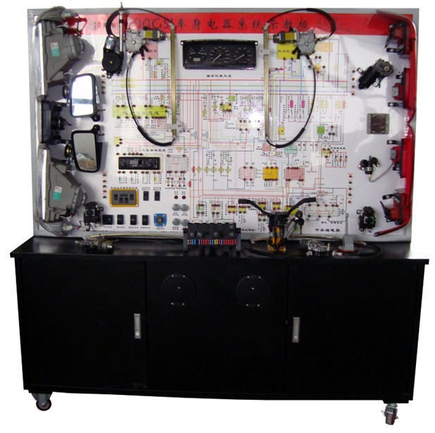 汽车车身电器系统示教板简介 选用桑塔纳2000车身电器系统材料为基础制作,模拟汽车运行,演示车身电器系统的工作过程;本示教板功能齐全、操作方便、安全可靠。