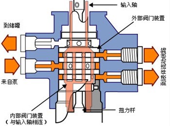 转向轴中的输入装置形成了滑阀总成的内部结构。 它也与扭力杆的顶端相连。 扭力杆的底端连接在滑阀的外侧。 扭力杆还会转动转向器的输出装置,以使其与小齿轮或蜗杆相连,具体取决于汽车的转向系统类型。 当扭力杆扭转时,它会使滑阀的内侧相对于外侧旋转。 由于滑阀的内侧也连接在转向轴上(从而与方向盘相连),因此滑阀内外侧之间的旋转程度取决于驾驶员在方向盘上所施加扭矩的大小。