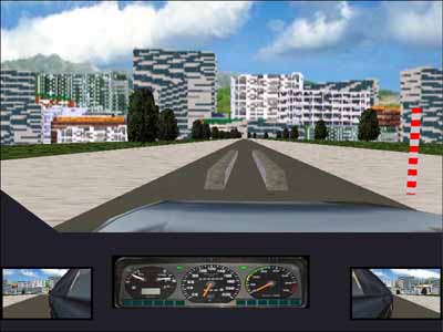 2、视景图像技术指标 :前视景(占主体、有显示档位、成绩分数);后视景(后视镜,可升降位置);模拟仪表(车速、里程、发动机转速、可关闭);车头(大货车、吉普车、轿车、大客车);通过双击鼠标,可实现正视图象与俯视图像驾驶之间切换。具有复现功能。