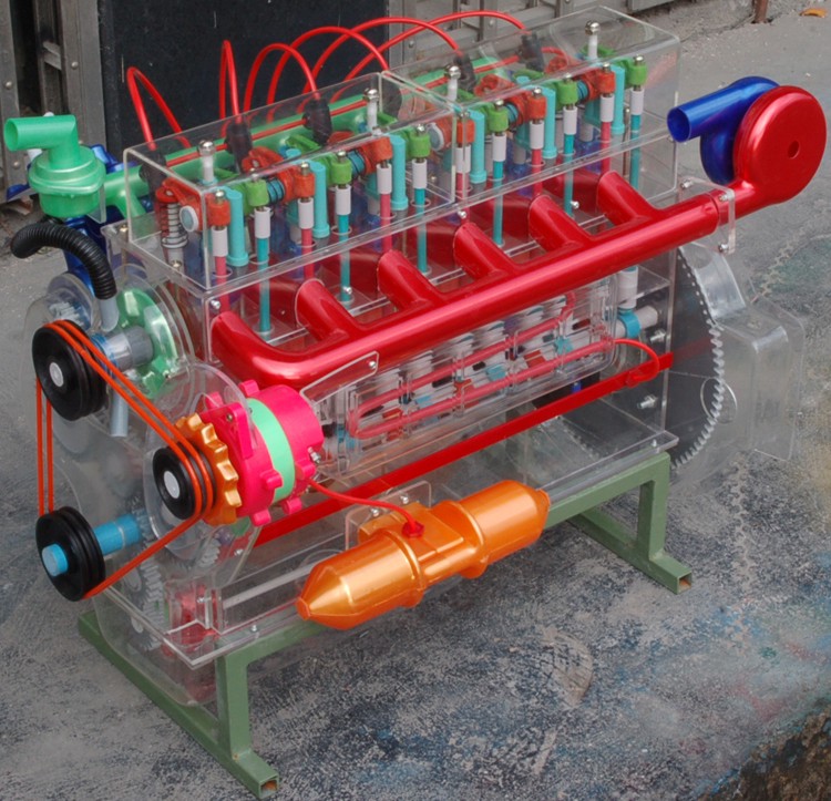 汽车透明教学模型,斯太尔发动机教学模型 [规格型号]: JY-1988 透明汽车教学模型,是配合大专院校,汽车驾驶培训、汽修等专业的教具之用,通过专业课程的教学和本模型演示,可清楚地了解汽车的内在部位的结构和作用,使学生很快地掌握专业知识。本系列模型采用进口有机玻璃,工程塑料、铸铝汽车部件等,用模具一次成型铸造。电机驱动、透明直观,内部结构清晰,各部件结构一目了然。 我国引进的斯太尔技术在当时处于国际20世纪70年代末80年代初的水平。斯太尔技术的引进,为当时的中国重卡行业弥补了空缺,随后原中国重型汽车集团开始对斯太尔技术进行吸收、融合、国产化、自主研发和创新等各个阶段。1986年中国重汽技术发展中心成立后,先后组织了3次图纸、明细表的消化吸收和中文化工作。这些图纸的中文化保证了按计划组织生产和批量出车的要求,使斯太尔技术很快辐射到全国10多个省市的载重车生产厂和相关科研单位,并将斯太尔打造成国内先进的重型车产品平台。