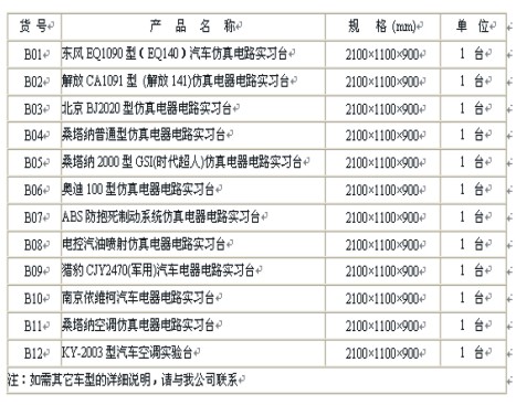 | 下一条:汽车仿真电气电路学生实习台,汽车空调实验设备,汽车实验室设备 |