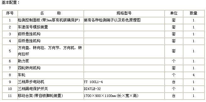 产品简介: 该设备采用马自达汽车四轮转向系统为基础,全面展示了汽车四轮转向系统的组成结构和工作过程。适用于中高等职业技术院校、普通教育类学院和培训机构的汽车四轮转向系统理论与维修实训教学需要,完全满足对汽车四轮转向系统结构展示、工作模拟、拆装实训等教学功能。