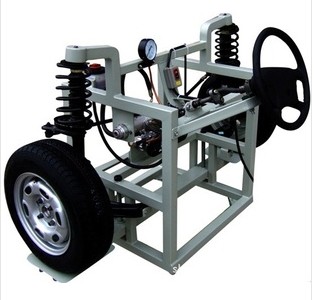 产品详细信息 产品名称: 凌志400电控动力转向台架 产品信息: 功能 1.适用于各类院校汽车专业学员实操技能的培训考核。 2.可对助力转向进行结构和控制系统的认识实训。 3.可对助力转向进行拆卸和装配实训。 4.由三相电机工作,模拟发动机动力输出,提供助力转向泵工作的动力源。操纵方向盘,可充分展示助力转向的工作过程。实训台上安装有压力表,可反应助力转向工作时压力的变化。 5.实训台提供给学员学习前轮定位的的工作平台。 6.实训台配套有方向盘伸缩和倾斜调整装置,有调整和记忆方向盘的位置功能。 7.实训台面板采用雕刻工艺,安装有电控助力转向和电控伸缩和倾斜控制单元检测端子,可在面板上直接测量电控单元每个管脚的信号参数,可使用万用表、示波器完成整个电控系统的检测实训。 8.配备智能化故障设置系统:①采用数字化集成电路板单片机控制、液晶显示屏、简易操作界面。②可自由设定任意一处电路故障断路、对地短路、接触不良。③该设备可进行自动故障设置和实操考评。④可根据设备使用要求调整故障设置点数量。⑤安装有通信串口可与计算机串口对接,可使用软件完成故障设置、故障排除、参数设定。⑥安装有网络接口,可用网线与其它设备的故障设置装置组成一个网络,通过主控计算机控制每一台终端设备故障设置、故障排除、参数设定、远程起动、信息反馈、考核评分等。 工艺 1.面板:采用5mm厚进口磁白板经喷烤漆工艺制作而成,不变形、坚固耐用,并可保持五年不褪色;面板文字和图形部分由电脑雕刻而成,美观大方。 2.支架:钢结构经喷烤漆工艺制作而成,安全可靠、坚固耐用。 尺寸 规格:1500×900×1800mm 动力转向系统实验台(液压助力) 简介: 本产品是用于大专院校、职业学校、汽车修理专业教学之用,通过本产品的演示或实习,可清楚的了解汽车电路及机械结构与功能,便于学员较快地掌握轿车的构造与原理,提高学员对轿车的初步认识,实属汽车学校教学教具中最理想的教具。 配置: 轮胎、钢圈、减振器、方向机、动力泵及油管、压力表、前独立悬挂方向盘彩用三相电机驱动,助向泵工作车身重量模拟调节移动钢台架(喷塑)。 规格:1200×1000×1000 电源:交流380V 1.1kw 净重:100kg