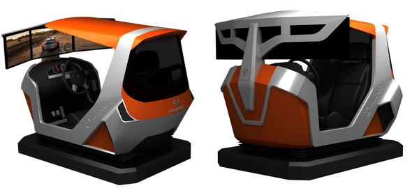 (6)动感平台 底座在游戏机的下方,用来承载整个模拟器及玩家,模拟汽车的动感,本产品采用二自由度电动缸驱动的动感平台,实现汽车的左右倾斜已经前倾后仰动作,给驾驶员产生推背、离心、摇晃、颠簸等感觉。