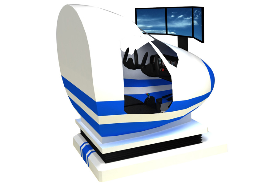 全动感直升机飞行模拟器采用2自由度电动缸动感平台,27寸3D显示器3台,高配置游戏电脑一套。