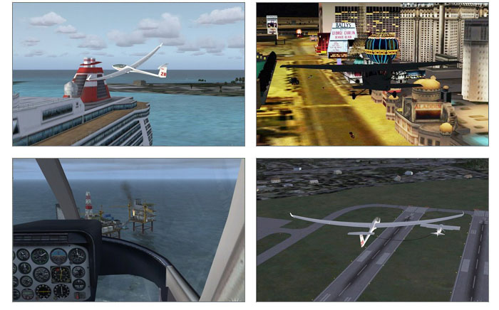 为了模拟真实飞行,我们使用了业界最先进的技术,如计算机成象技术、虚拟现实技术、动态分屏技术等,将飞机场、大海、城市、港口逼真的展现在驾驶员面前。系统可以与下方的多自由度平台紧密结合,用户可以真实的感受到飞机飞行过程中的真实的倾斜效果。更为惊人的是设计师还为这台系统配备了虚拟进风系统,以达到绝对的真实。 系统的主题是需要体验者完成一次驾驶任务,需要体验者驾驶飞机将乘客安全的由规定城市在规定时间送到另一个城市;体验者通过我们的实时控制平台能够逼真的进行飞行操作,他们可以通过模拟操纵杆和控制按钮等控制飞机的起飞、滑行、转弯和降落;图像采用逼真的动画制作,主要展现了飞机跑道,天空中的云朵,地面展现城市和山川树林河流等,场景有真实的立体层次感;飞机起飞到升空一切场景变化真实效果一致,如飞机起飞城市逐渐变小并且逐渐模糊,飞机穿过云朵飞行到云层上方,飞机正确找到降落跑道并且降落等等。场景内容为一套,一次完整的体验为飞机有一个城市起飞出发,穿过众多山川河流等场景抵达另一个城市,然后完成降落。体验过程中画面有导航提示,体验者操作越接近正确航道完成时间则越短,如果体验者未在规定时间内完成降落则体验失败。