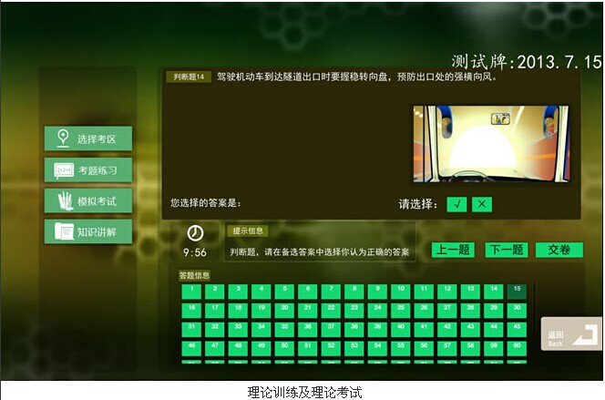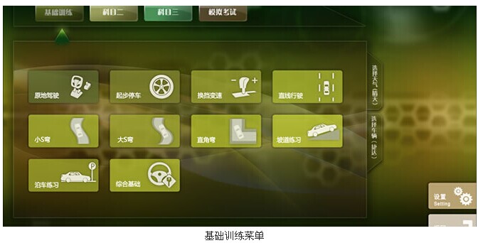 软件部分采用上海考场实景拍摄建模研发,训练科目包括理论教学模块、驾驶训练模块(科目二、科目三)及自由驾驶模块,让室内学员可以在真实考场环境进行智能模式训练,从而提高考试通过率同时实现节能减排的目的!