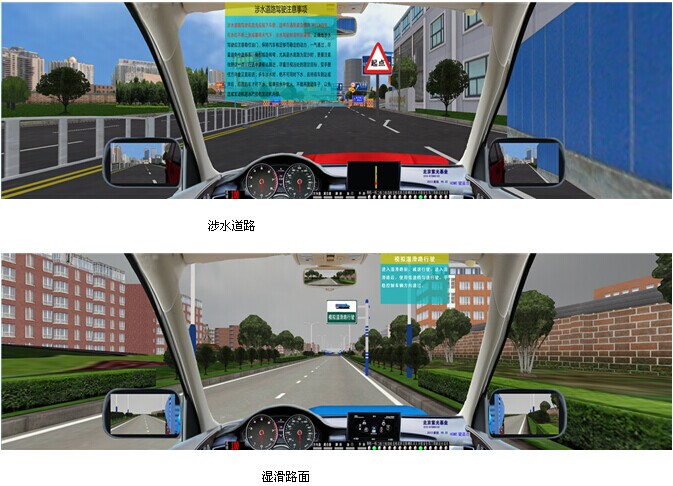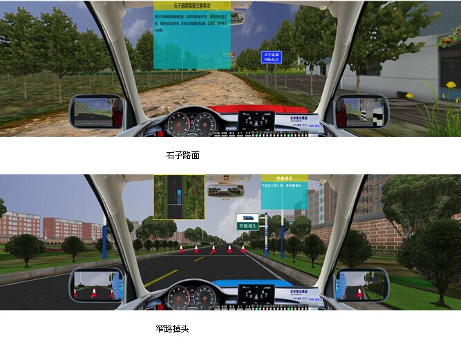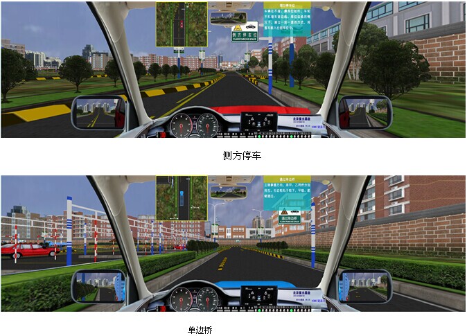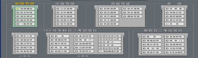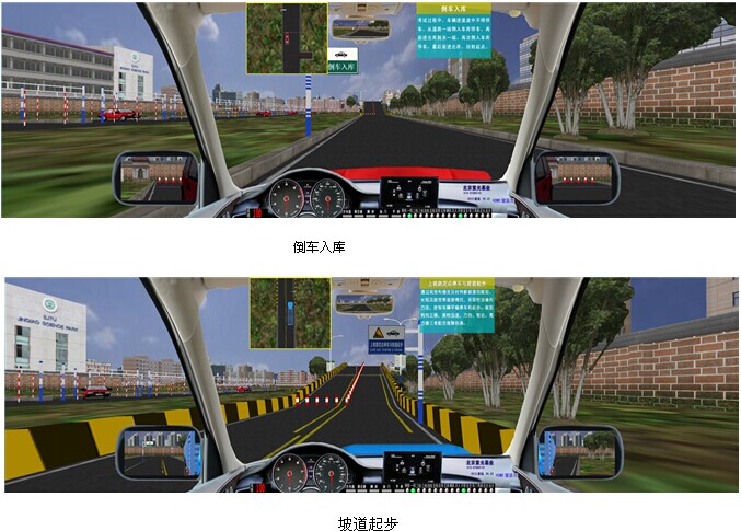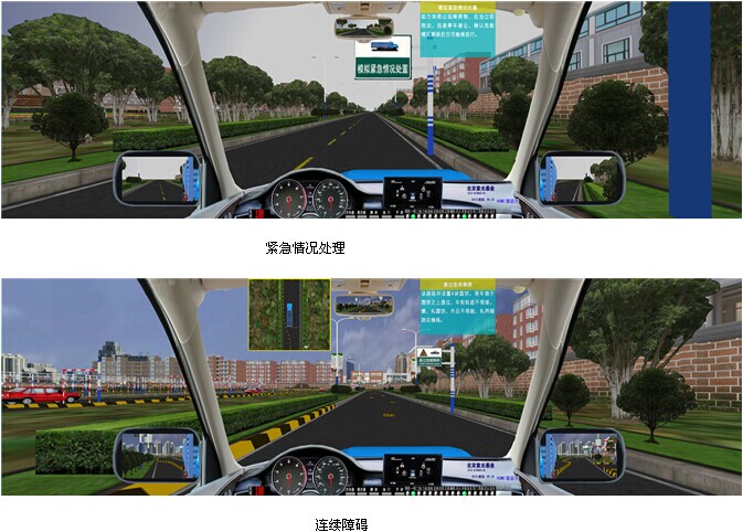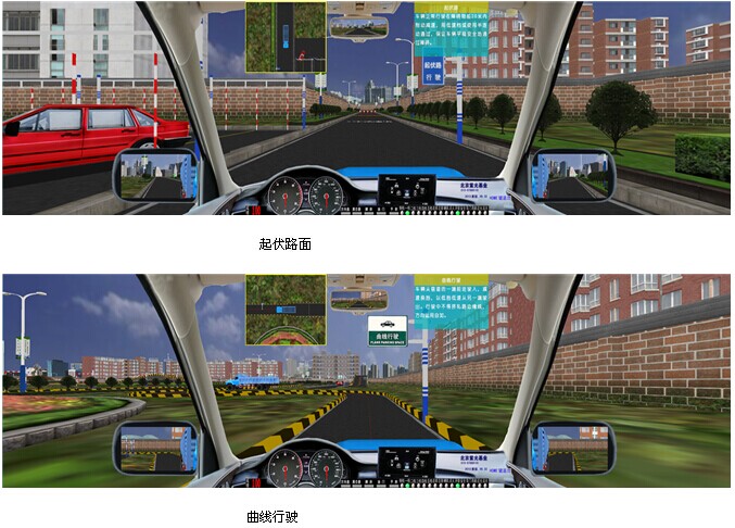 JY-6013A3P型汽车驾驶模拟器,是我公司根据2013年1月1日起实施的公安部123号令研发而成,新版汽车驾驶模拟器软件符合“公安部123号令”考评规则,小型汽车、小型自动挡汽车、残疾人专用小型自动挡载客汽车和低速载货汽车场地5项必考;大型客车、牵引车、城市公交车、中型客车、大型货车场地16项必考。 小车(科目二)场地5项分别为:倒车入库、坡道定点停车和起步、侧方停车、曲线行驶、直角转弯;大车(科目二)场地16项分别为:桩考、坡道定点停车和起步、侧方停车、通过单边桥、曲线行驶、直角转弯、通过限宽门、通过连续障碍、起伏路行驶、窄路掉头、模拟高速公路、连续急弯山区路、隧道、雨天、雾天湿滑路、紧急情况处置。新版汽车驾驶模拟器软件道路驾驶技能考试(科目三)内容包括:上车准备(系安全带)、起步、直线行驶、加减挡位操作、变更车道、靠边停车、直行通过路口、路口左转弯、路口右转弯、通过人行横道线、通过学校区域、通过公共汽车站、会车、超车、掉头、夜间行驶等训练考试项目。产品完全符合“中华人民共和国公安部令 第 123 号令”及教育部新的国家机动车驾驶员训练大纲要求。本汽车驾驶模拟器分为单台模拟驾驶及与主控台联网模拟驾驶两款;具有自主知识产权。是目前市场上功能最全最新的汽车驾驶模拟软件。 操作错误检测项目:系统对学员操作各操作部件正确与否进行判断,如启动时是否踩下离合器、闯红灯报警等。与前面版本不同的是,区别判断“离合器松得太快”和“发动机转速过低”。 13系统自动评分:最新增加了学员在每次驾驶训练后系统自动给予文字显示成绩评分。 无纸化考试:无纸化考试采用标准化试题,题库里共有11套试题(共1500道试题),可以随机出题考试以可以依次考试每套试题。与现有无纸化考试系统最大的区别在于:无纸化考试试题集成在驾驶模拟器系统之中,可以利用模拟器进行。 交通标志、标线及交通法规 :交通标志、标线包括所有的禁令标志、禁止标线、警告标线、警告标志、指路标志、指示标线、指示标志。 交通法规包括:道路交通安全法、道路交通安全法实施条例、道路交通安全违法行为处理程序规定、道路交通事故处理办法、道路交通事故处理程序规定、高速公路交通管理办法、机动车登记办法、机动车登记规定、机动车驾驶员培训管理规定、机动车驾驶证申领和使用规定、交通违章处理程序规定。 学生驾驶舱: 座机由驾驶座、视屏彩电、汽车五大操作系统、核心计算机、高级进口传感器、数据采集板等组成,各操作部件通过传感器,经数据传感板传输。 驾驶模式: 被动式:被动式驾驶适用于初学的学员,学生可以按照电脑语音提示进行规范的操作练习。 主动式:主动式驾驶与实际车辆相同。 功 能: 1、主视屏:显示驾驶前方道路与周围路况、使学生能感觉身在驾驶室操作着运行中的汽车。并显示档位、成绩分数。 2、后视镜:能达到与真车相同的模拟效果。可升降。 3、模拟仪表:显示车速、里程、发动机转速。并且可自行决定关闭或开启。 4、特殊功能:通过鼠标操作可由正常驾驶室驾驶模式切换到六种不同府视式驾驶模拟. 5、训练场景科目:⑴ 一般道路;⑵ 高速公路;⑶ 城市道路;(包括:行人、自行车、其它车辆、双黄线、岗亭、警察、红绿灯、转盘、交通标志标线等。)(4)炫目道路(5)泥泞道路(6)山区道路;(7)曲线穿桩、场地倒库;(8)“8”字型路;(9) 直角弯路、十字路口、丁字路口、匝道等。(10) 蛇形路;(11) 就位停车;(12) 顺行停车;(13)双边桥;(14)单边桥;(15)单凸桥;(16)横断桥;(17)骑越障碍;(18)立交桥;(19)隧道。 6、天气:一般道路可选择四种天气:白天、雪天、雾天、雨天、黑夜。 7、画面选择:可以选择“打开”或“关闭”:后视镜、向导地图、错误提示、成绩等。 8、其它车辆选择:各道路分6种数目选择:3至60辆。 9、车型选择:在训练中有六种车型:小轿车、吉普车、无级变速车(自动档)、大货车、大客车、农用车等。 10、汽车模拟技术:汽车多自由度数学模型,实现汽车转向、制动和加速的逼真模拟。 11、测试调整功能:传感器测试:方向机的测试、离合器的测试、油门的测试、制动器的测试(脚刹)、手制动的测试、变速器各档位的测试、鸣号、点火、开锁。只要打开测试界面便一目了然。并可作学员操作曲线学仿。