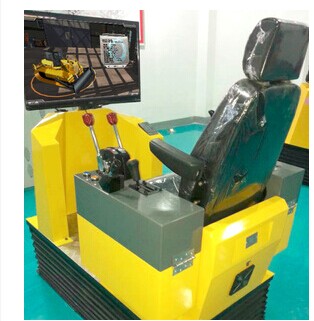 二、功能简介 该设备硬件由驾驶座椅、计算机舱、底座平台、品牌计算机,视屏显示器,转向控制器,档位操作杆,松土器操作杆,身份信息读卡器、视角调整摇杆、油门推杆,左右制动踏板,数据采集卡及各种功能控制按钮组件等组成。设备采用与真实推土机相同的操作部件,逼真的操作手感,使得其操作功能、操作感觉与真机完全吻合;其包含: 左右制动踏板:采用原装制动踏板设计,与原装设备布局同步,将制动动作与软件实现无缝对接,实现最真实的操作效果。 燃油控制杆:用来控制发动机的转速和输出功率。L-怠速位置、H-高速位置。采用真机油门零部件进行组装生产,实现油门线性变速保证学员操作感觉与真机效果完全相同,在保证产品质量的同时实现了与真机的最大相似性!
