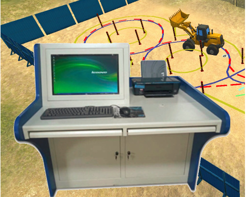 视角调整摇杆、点火开关、功能按钮 二、软件部分 该模拟器配备最新的推土机模拟软件13.5协同作业版,该软件为我公司结合推土机培训行业最新标准设计完成,具有自主知识产权,是一款理论与实践操作考评相结合的最新训练软件。
