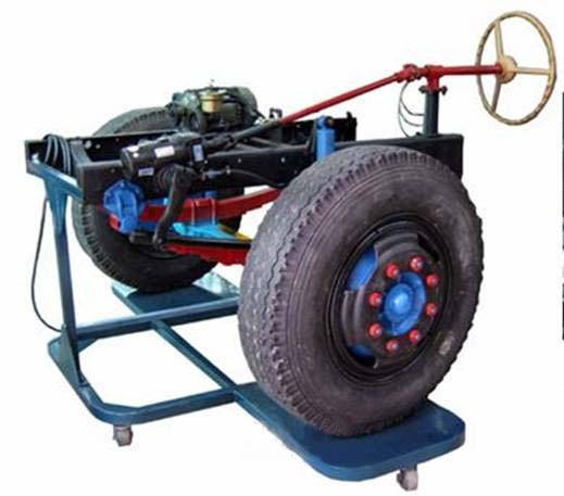 汽车机械转向与前悬挂实训台产品简介 本实训台由原厂机械式方向机、转向角、减震器、方向盘、轮胎、可移动式台架等组成。采用国产车系列转向系统实物为基础,充分展示汽车转向系统的组成结构和工作过程。适用干中高等职业技术院校、普通教育类学院和培训机构对汽车底盘的理论和维修实训的教学需要。本实训台功能齐全、操作方便、安全可靠。 (二)结构组成 原厂方向机、转向盘、减震器、方向盘、轮胎、可移动式台架等。汽车机械转向与前悬挂实训台 (三)功能特点 1.真实可运行的汽车转向系统,充分展示汽车转向系统的组成结构; 2.旋转方向盘,有比较吃力的感觉。便于学员对无助力转向的理解和认识、了解无助力系统的结构原理和工作过程; 3.底架部分采用钢性结构焊接,表面烤漆工艺,带自锁脚轮,安全可靠; 4.实训配备有使用说明书及相关资料。 (四)技术参数 1500mm × 1000mm × 1200mm(长×宽×高)。