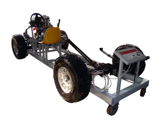 (一)产品简介 本实训台由美国克莱斯勒-吉普大切诺基 (Grand Cherokee) 原厂前后悬挂系统、变速器及换档机构、分动器、等行驶系统等主要部件、减震器、方向盘、轮胎、可移动式台架等组成。采用克莱斯勒吉普大切诺基 (Grand Cherokee)原四轮驱动系统实物为基础,充分展示汽车四轮驱动系统的组成结构和工作过程。适用干中高等职业技术院校、普通教育类学院和培训机构对汽车底盘驱动系统的理论和维修实训的教学需要。本实训台功能齐全、操作方便、安全可靠。 (二)结构组成 美国克莱斯勒-吉普大切诺基 (Grand Cherokee)原厂四轮驱动机构、前后悬架、前后车轮、减震器、方向盘、变速器及换档机构、分动器、可移动式台架及减速电机等。 (三)功能特点 1.主要部件采用解剖处理且涂装不同颜色以方便识别,可进行四轮与两轮驱动对比实验。 2.通过拆装实习,学习四轮驱动系统的结构原理,装配技巧,掌握系统的调整内容、方法及组装顺序。 3.演示四轮驱动的变化过程,减速电机驱动变速器及分动器。 4.演示原车四轮驱动系统的工作过程及四轮驱动系统基本结构组成和工作原理。 5.可进行四轮定位检测与调整,四轮定位三要素的调整和作用。 6.底架部分采用钢性结构焊接,表面烤漆工艺,带自锁脚轮,安全可靠; 7.实训配备有使用说明书及相关资料。 (四)技术参数 1500mm × 1500mm × 1200mm(长×宽×高) 电机:220V/750W 交流电源:220V (五)产品型号