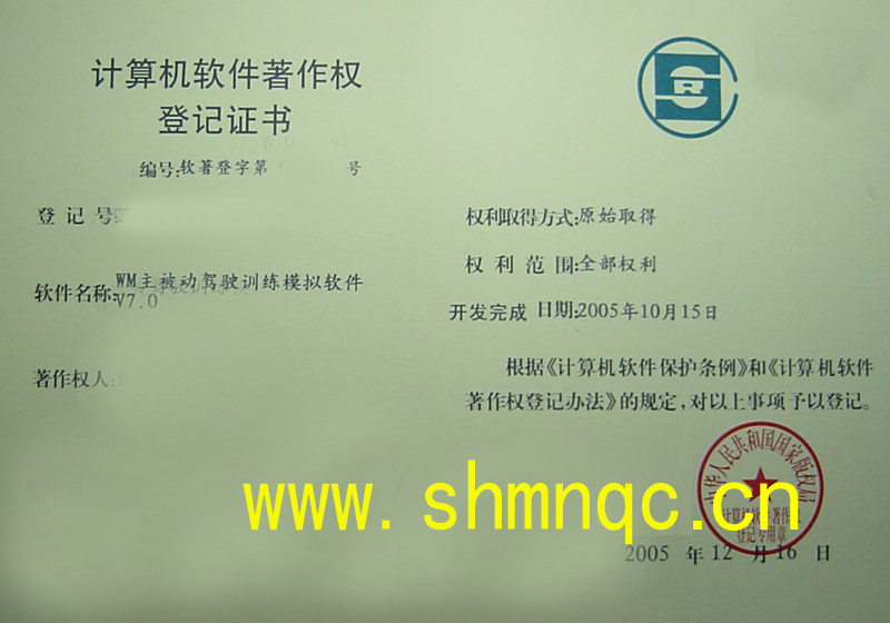 vm7型汽车驾驶模拟器软件版权证书