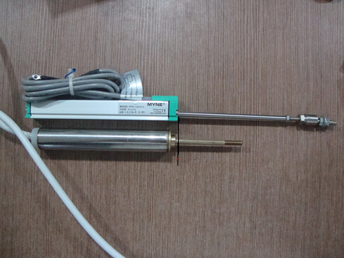 如左图对比:上方为正规厂家生产的位移传感器,含有厂家标示,有三包日期,位移长度10cm,精度高,下方为一般厂家使用传感器,位移长度4.5cm,精度较低。