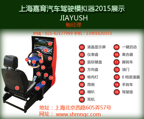 2015年最有钱途的投资项目--模拟驾驶训练机 模拟驾驶训练机的详细描述: 根据发展情况,我们公司研发一款在家里就可以轻松学车的智能学车辅助训练机,让学车的人不再为学车难而困扰。足不出户,在家轻轻松松就学会驾驶的好技术。 |