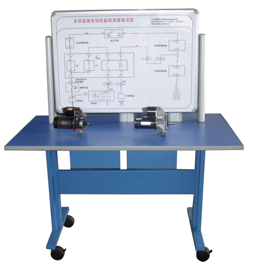 3.示教板面板上绘有彩色喷绘电路图和工作原理示意图,喷绘图由有机玻璃保护,四周由铝材镶边,学员可直观对照电路图和实物,认识和分析起动系统的工作原理。