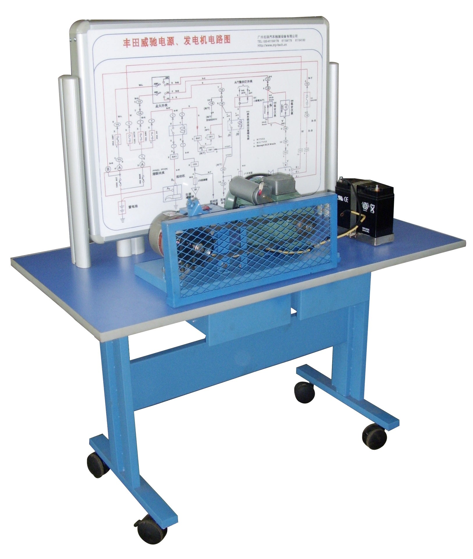 3)示教板面板上绘有彩色喷绘电路图和工作原理示意图,喷绘图由有机玻璃保护,四周由铝材镶边,学员可直观对照电路图和实物,认识和分析发电机系统的工作原理。