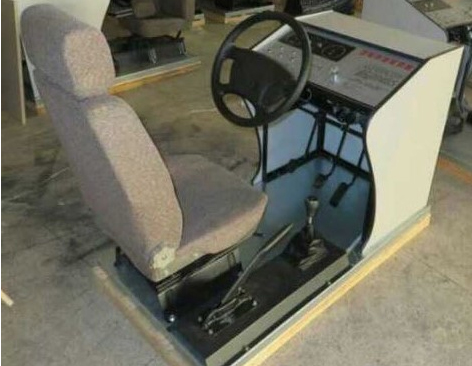 座舱由驾驶舱座,视景计算机,视屏(19寸显示器)带触摸功能,操作传感器,数据采集卡,耳机和话筒等组成。座舱包含了与真实车辆相同的操作部件,“五大”操纵机构:方向盘、离合器,脚刹,油门和手刹。真车变速器:倒档、一档、二档、三档、四档、五档和空挡(自动档只含前进档、倒车档和驻车档)。真车操作开关:左转向灯、右转向灯、应急灯、喇叭、点火开关、总电开关、安全带、车门、雨刷、远光灯、近光灯、远近光交替。