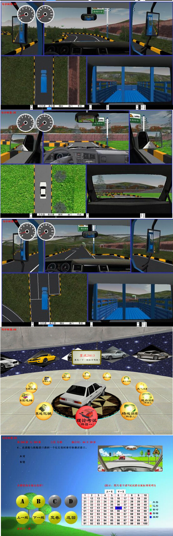 四、适用范围: 本模拟器适用:1.部队与地方新机动车驾驶学员的培训;2.大中专院校、中学的素质教育与劳动技能教育;3.实习驾驶员上路培训;4.教练员的规范学习与考核;5.违法驾驶人的再教育。 |