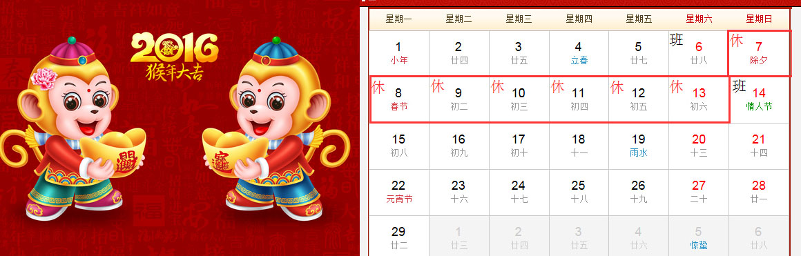 春节放假时间:2月7日。2月14日(农历正月初七)恢复正常上班。 |