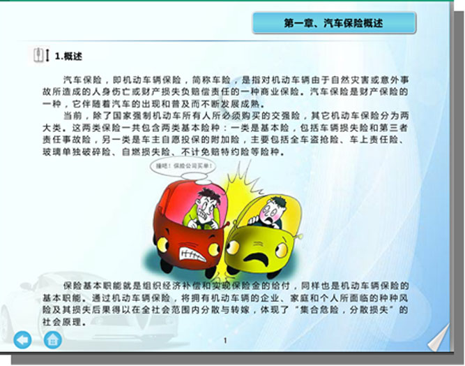 前瞻产业研究院分析认为,近年来机动车保有量每年以15%左右的速度增长,必将增大对汽车保险的需求。 2016汽车保险模拟估损教学软件是依照《中华人民共和国保险法》 、《中华人民共和国道路安全法》相关条文规定,中国大型汽车保险公司PICC中国人保财险,中国平安保险等多家汽车保险部相关工作流程及内容研发的以工作流程为导向的结合我国高等院校现有保险教学教程的综合性多媒体教学软件。 本实训教学软件包含汽车保险理赔流程中的报案、调度、委托、查勘、立案、定损(交强险定损、商业险定损)、理算、核赔、结案、保单管理等全部模块。并包含十几种真实案例教学信息。可根据登陆者信息设计权限岗位,并针对岗位进行分组演练,情景还原等现代化并有真实性的教学方法 结合多媒体形式进行理论知识讲解 |