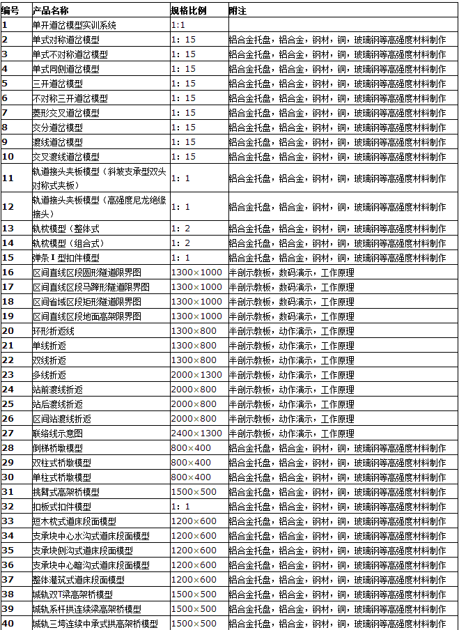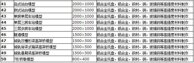 | 城市轨道交通线路与站场实训模型名称规格比例表 |