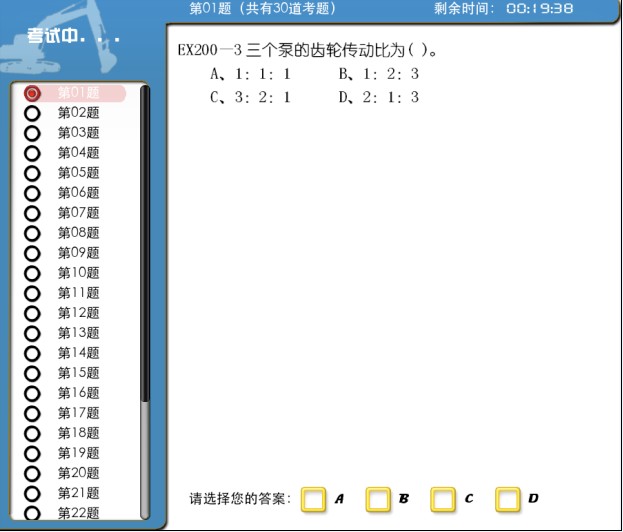 评判结果 软件训练课题包含了挖掘机实际工作的各种作业内容;比如:挖土装车、找平、挖沟、破碎岩石等;帮助学员掌握挖掘机的实际操作要领和操作规程,使得学员通过模拟设备的操作来完成挖掘机实际操作前的各项操作培训。 训练系统添加大量的理论视频光盘、涵盖了工程机械的保养、操作、维护等一系列内容,解决了学校理论资料匮乏的难题;采用与汽车理论考试同样的模拟试题库包含几百道模拟考试题,学员可以直接在设备上考试、打印考试成绩等,使考核学员的理论知识掌握情况变得更加简单、易行。 设备运行PC采用国内品牌主机,全国三年联保!显示系统采用国内品牌液晶显示屏进行图像同步显示,效果更加逼真、绚丽。 该模拟设备硬件部分逼真再现了挖掘机的各种真机操作部件:破碎开关、驾驶室液压安全锁、油门控制旋钮、行走速度档、各种操作按钮等等;美观的设备造型、逼真的操作手感、可靠的产品质量,实现了学员在模拟设备上的所有训练和学习与真机实操的有效接轨,从而大幅提高学校的教学质量。 公司在销售设备的同时会给您提供大量的工程机械培训理论资料及教材,为您解决教学中存在的理论资料缺乏、学习内容与实际操作不符合等问题,您选择的不仅是我们完善的设备,更是选择了一整套培训流程及理论资料库。该套资料包含国内各种工程机械培训的操作知识、保养讲座、维修资料,更有大量的教学光盘、理论考试题等等,绝对是您超值的选择。shmnqc.com |