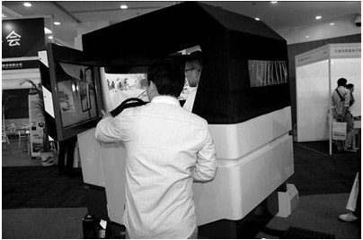 在展览会现场,汽车驾驶模拟器引来众多参观者的围观和体验。据了解,这款汽车驾驶模拟器可以模拟雪地、弯道、坡道等多个驾驶场景,并能记录下驾驶者的行车轨迹和可能出现的问题,对驾驶培训和学习有很大的指导作用。 |