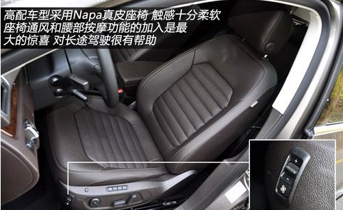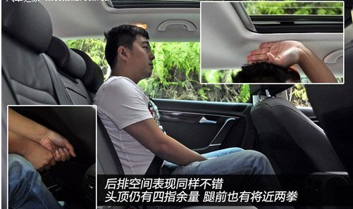 如果你购买的是一辆高配的迈腾旅行版,那么驾驶员还可以得到柔软舒适的Napa真皮座椅以及座椅通风、腰部按摩这些功能。空间也不是问题,身高175cm的体验者前排调整到合适的驾驶位置时,后排腿前依然有两拳左右的空间。 |