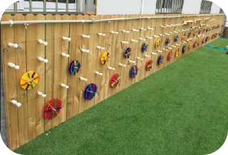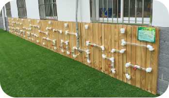 每米设一出、入水口,小朋友通过控制阀门,能控制水走不同的流向和出水口。 | 高度100厘米左右,长度依据幼儿园现场设计。长度不低于5米 | 不带背板 |