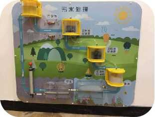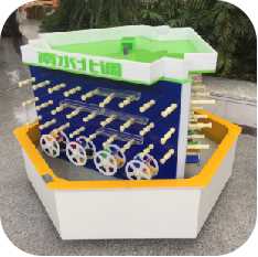 模拟演示污水的净化过程。通过手压泵使水流循环。 | 长120cm,高100cm | |
