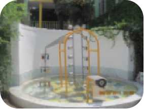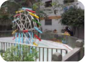 小朋友移动接水盒,让水一级一级流下去带动水轮,每个水盒一个出水处,让小朋友每移动一个水盒都能体现水流变化带来的喜悦。水循环使用。 | 玻璃钢水池,适合室内外安装。 | |