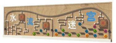 小朋友移动接水盒,让水一级一级流下去带动水轮,每个水盒一个出水处,让小朋友每移动一个水盒都能体现水流变化带来的喜悦。水循环使用。 | 高度100厘米左右,长度依据幼儿园现场设计。长度不低于5米 | 不带背板 |