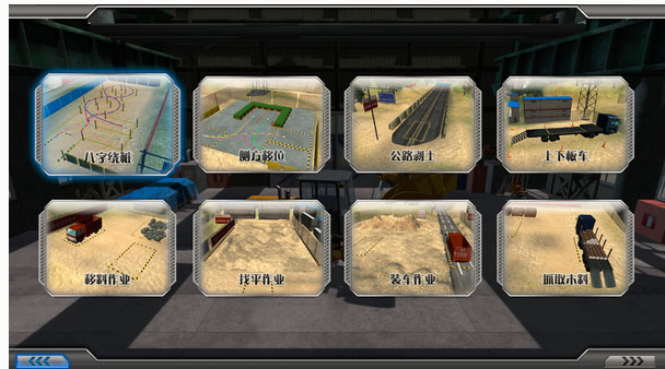 1)基础训练模式:8字绕桩、侧方移位、移料作业、装车作业、公路剥土、木料抓取、找平作业、空动作、自由作业操作等功能模块。