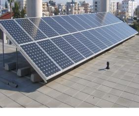 系统支架设计容量为5KW,采用标准工程件,镀锌方钢,镀锌C型钢,20块250Wp太阳能光伏组件,固定于C型钢架上,与室外阳台相结合,为保护实验过程中的安全,该系统采用2串10并方式连接。