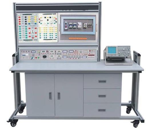 实训屏为铁质双层亚光密纹喷塑结构,铝质面板,为实训挂箱提供交流电源、直流稳压电源、恒流源、函数信号发生器、测试仪表及实训器件等,具体功能如下: