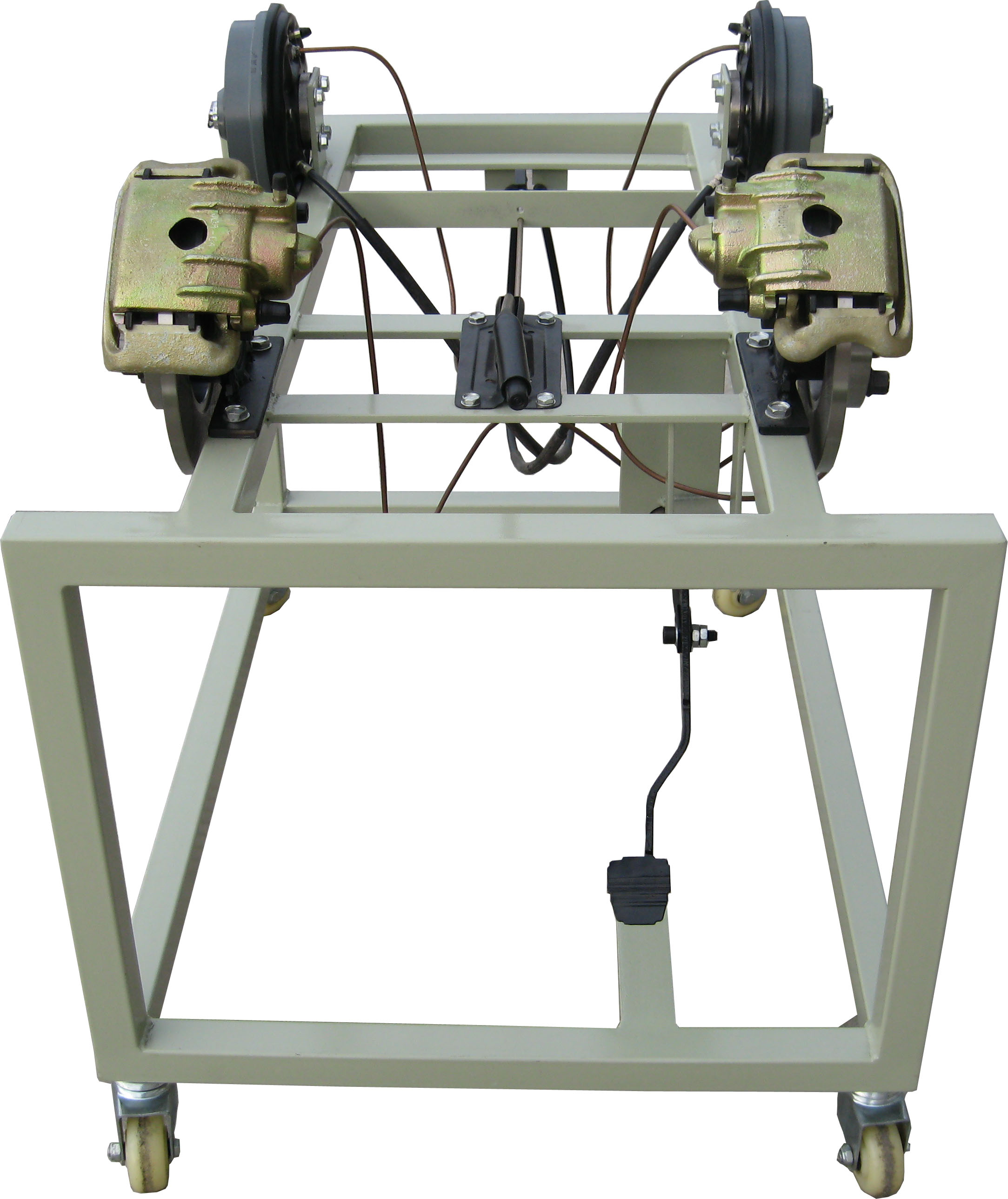 发动机带手动变速器解剖展示台 型号: 大众 2、曲轴、活塞、气门等部件在剖开的气缸中清晰显示。 3、进排气系统、冷却系、供油系、润滑系。 4、彩色的剖面,增强结构间的层次感。 5、采用优质钢管、烤漆柜架,靠其4个万向脚轮移动。 6、电机带动、观察发动机工作状况 7附使用手册,和安全防护罩。 重量:150g 外形尺寸:900×900×1300 汽车底盘实训台 本实训台是本公司采用上海大众2000型为适应汽车教学需求而研制的,该实训台由液压制动总成、制动工作原理、制动放气、手制动调节、拆装等、可移动式台架(万向脚轮)、可接刹车油压压力显示表、显示刹车管路油压压力、模拟等多项功能、具结构紧凑、操作方便、安全可靠、教学直观、是汽车液压实物教学不可缺少的实验室设备之一。 技术性能: 1、主要参数值: ●前盘后鼓试 (前盘 后盘) ●可移动台架 1100×700×700mm ●刹车油 500ML ●设备重量 60Kg
