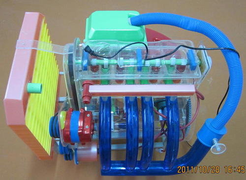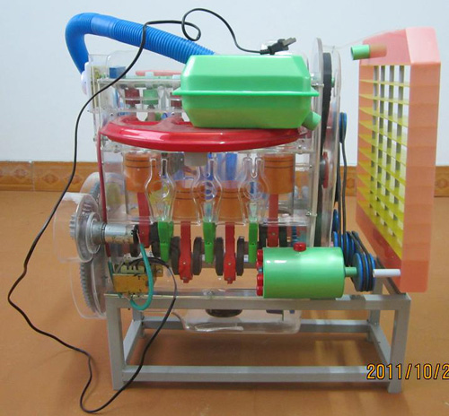 发动机机体解剖模型选用透明有机玻璃制作,各部件均以硬质塑料加工,用螺丝固定在金属车架上,演示时使用220V电源。 发动机机体解剖模型,适用于大中专院校、部队院校、高专高职院校、交通汽校、驾培中心、技工学校、劳动技能培训中心、劳动就业指导中心、汽车驾驶和修理培训教学。 发动机机体解剖模型,外壳采用进口的有机玻璃一次成型,透明直观,部件采用工程塑料、铸铝汽车件由模具成型、演示系统采用光电组合,具有机械灵活、部件坚固、经久耐用、美观大方等特点。 发动机机体解剖模型,以透明直观形象的特点,展示了汽车结构和工作原理。通过汽车专业课程的教学和本模型的演示,可清楚地了解汽车内部各部件的机械结构与性能,便于学员较快地掌握汽车驾驶和修理技能。