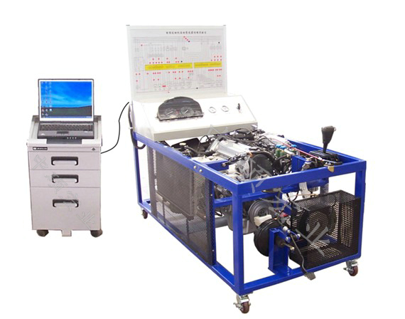 功能说明: (1)发动机自动变速器多媒体实验台配置真空表,汽油压力表、水温表、机油压力表、转速表、进气真空压力表、电源电压表等以观察发动机工作状况,台架面板显示控制系统运行动态(发光二极管显示)、传感器信号或模拟信号动态(数码电压表)、模拟信号控制(滑动电阻)、信号检测端口、发动机ECU、防盗控制单元、中央继电器保险丝盒、点火开关、诊断插座等。 (2) 数码电压表显示相关信号电压,并可采用滑动电阻模拟相关传感器信号电压。 (3) 采用发光二极管显示某些运动系统的动作状态如防盗灯、点火开关、节气门开度大小信号等)。 (4) 管路采用电磁阀控制,在进气总管使用开关设置故障。 (5) 在进油管上采用电磁限压阀设置供油压力不足故障,限压阀采用开关设置故障。 (6) 在油压调节真空管上串联一个电磁阀,可人为将真空信号转化为外界人气压力信号,台架面板上采用发光二极管显示此电磁阀的工作状态。 (7) 可设置油路故障、气路故障、保险丝故障、继电器故障;同时可设空气流量计信号过大过小故障。 (8) 喷油器工作电流、点火电流、电源电压、电动燃油泵工作电流可采用电压表、电流表显示。 (9)能显示发动机自动变速器控制系统信号,具有实现实时数据采集、显示、数据流分析、故障码读取、系统设定、匹配、执行器动作测试等功能,并通过软/硬件设定,改变控制系统输入/输出参数,参与电控系统工作。 (10) 可实时显示高低档位特性曲线,并列表显示变速器输出转速、节气门开度等参数的变化关系。 (11) 台架的电子控制电路设置必要断路故障和短路故障,设置故障的开关可靠。 (12) 发动机面板电路图上ECU各端子代号标注,在面板的下方有清淅的标注。 (13)配置手工故障设置与排除装置,能够设置与电脑端子脚有关的所有故障(一般在30个以上故障点),故障设置类型根据控制系统的工作原理设计成断路或断路和对地短路的组合。某些传感器通过配置电位计来设置信号模拟(包括水温,进气温度,空气流量传感器,节气门位置传感器等)。故障设置点全面、安全、可靠。 (14) 自动变速器半轴输出轴带有制动盘,能够进行失速,时滞试验。 (15) 发动机自动变速器多媒体实验台配置数据传输诊断接口,能用解码器读取故障码和观察数据流。