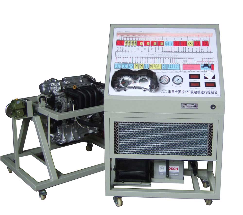 汽车发动机实训台 卡罗拉拆装运行发动机实训台(分离式) 型号: 丰田卡罗拉 本发动机实训台是本公司采用一汽丰田1ZR-FE卡罗拉双VV-i发动机为适应汽车教学需求而研制的,该实训台由电控发动机、操作显示面板及发动机彩色原理图电脑控制柜、面板原理图与发动机控制电脑管脚一一对应外接式检测区域、可移动式台架(万向脚轮)、汽油供给系统(脚踏式电子油门踏板)、冷却系统(自动电子风扇)、启动系统、防盗系统、芯片钥匙、水温传感器、空气流量计、节气门总成、氧传感器、发电系统、排放系统、发动机传感、器执行器、原车仪表、原车电脑、具有发动机运转及显示(水温.燃油.机油.充电.转速)配备原车OBD-Ⅱ接口、真空显示表、燃油压力显示表、喷油器工作指示LED灯、电压检测表(检测任意路传感器工作信号、工作电压)、智能故障设置区可设置8-32路故障(老师设置任一路线路故障)、故障排除区(学生通过各种仪器、仪表、或读取故障码)在面板上用专用排故线连接排除故障、通过OBD-Ⅱ读码. 消码. 数据流. 故障分析、传感器信号模拟等多项功能、具有波形分析、频率分析、结构紧凑、操作方便、安全可靠、教学直观、是汽车发动机实物教学不可缺少的实验室设备之一。 技术性能: 1、主要参数值: ●直列四缸16气门水冷电喷发动机 排量1.6L ●可移动台架(分体式+安全不锈钢防护拦) 1500×1000×1800mm ●汽油箱容量 10L ●润滑液容量 3.5L ●自动变速器油 6.5L ●蓄电池容量 12V54AH |