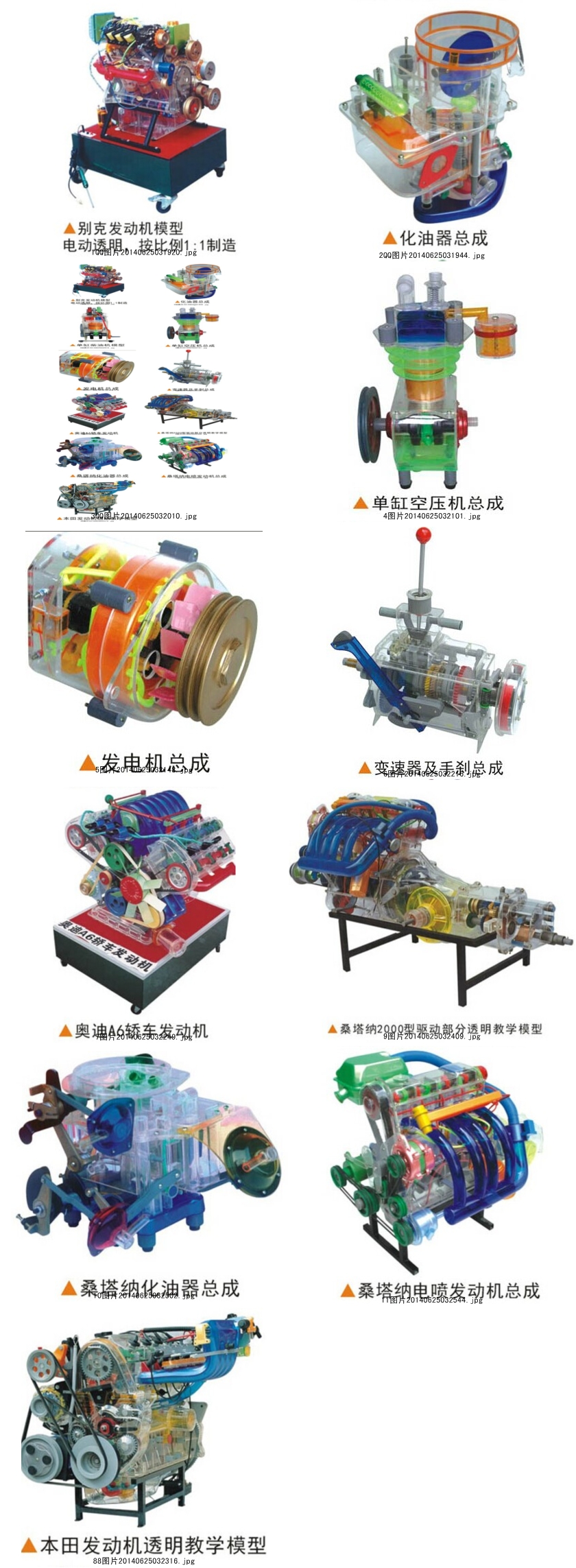 汽车部件透明教学模型是配合大专院校,汽车驾驶培训、汽修等专业的教具之用,通过专业课程的教学和本模型演示,可清楚地了解汽车的内在部位的结构和作用, 使学生很快地掌握专业知识。本系列模型采用进口有机玻璃,工程塑料、铸铝汽车部件等,用模具一次成型铸造。电机驱动、透明直观,内部结构清晰,各部件结构 一目了然。