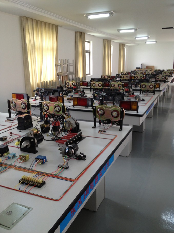 功能说明: 实训台由桑塔纳2000GSI系统轿车的电器总控制盒照明系统,信号系统,警报系统、电动刮水器原车零部件、点火系统、启动系统、充电系统、电喷系统,可实验模拟电喷系统,组合仪表、收放录音机、组合继电器等组成。可明视各系统的构造和工作过程,讲解其电路连接和工作原理,实时进行各系统电路的故障设置,诊断与排除,可供电路接线实训和考核。 尺寸:实训台:2100mm×1100mm×800mm(长×宽×高) 普通桑塔纳电路学生实习台