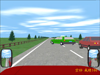 显示左后视镜——在屏幕的左下方显示,驾驶者可以通过该后视镜看到模拟车左廊一定范围内的场景。