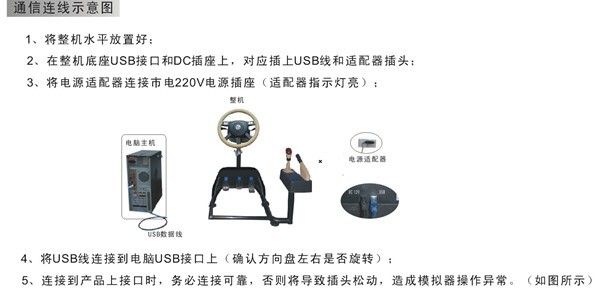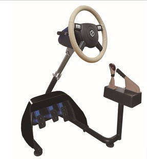2.2结构描述: 舒适型汽车驾驶模拟器的方向盘、档位等结构与真车尺寸一致,其中主要部件使用真车配件,方向盘、油门、离合器、刹车、档位、操作方法与真车一致,每个功能信号通过数据采集,同步传感方式传给主控制系统软件,并通过相应的仿真装置,实现力反馈和位移的模拟,学员操作时有与真车驾驶基本相同的感觉,可自主选择行车模式、车辆类型、气候状况、及不同场景。同时配有学员操作状态显示和语音提示,让初学者更好地体验学车的真实感受!