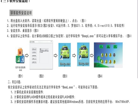 四、软件介绍 汽车驾驶模拟软件分为标准版和专业版:标准版用键盘、鼠标、普通游戏杆操作,可以让用户体验软件的界面和功能;专业版可以用于本公司生产的配置有真车操作部件的汽车驾驶模拟器、罗技产品等设备上。 专业版软件可作汽车驾驶模拟考试系统,全面涵盖科目一(理论考试)、科目二(倒桩和场地九项)和科目三(路考)等内容。专业版软件为驾培朋友提供便利的学车方式,是车灵通系列汽车模拟器专用定制软件。 本软件拥有丰富的个性化软件设置,完全按照真车驾驶考试要求设计,训练科目齐全,系统功能强大:14种训练车型(包括手动档、自动档,小汽车、大货车、大客车等);基础训练、九项与倒库和道路训练中总计27个训练场景;纯三维软件界面,FLASH动画讲解,完全可代替教练教学。