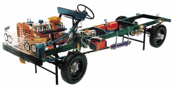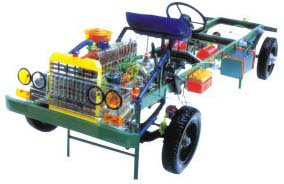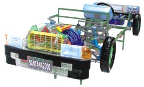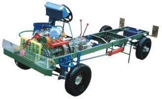 透明汽车整台模型是配合大专院校、军校、部队、交通、公安系统汽车驾驶培训、驾校、汽修等专业的教具之用,通过专业课程的教学和本模型演示,可清楚地了解汽车的内在部位的结构和作用,使学生很快地掌握专业知识。 ⑴本品选用进口透明有机玻璃制作,内中部件均以硬质塑料料加工,用螺丝固定在金属高温烘漆而成的车架上。各总成部分都经模具一次压模成形加工,代替过去胶粘合的方法,使产品在强度上有很大提高。透明度高、不变形、不混浊、彩色工艺先进重量轻,拆装方便。 ⑵演示时插上220V电源,将起动开关打开,使发动机起动同实车一样行驶。发动机总成用电机驱动,在油门处设有调速装置,能演示发动机转速高低。离合器分离明显,操纵灵活,离合器外壳整体压模而成,变速箱和各档齿轮用各种颜色表示,换档灵活,手制动美观。后桥外形压模而成,内中主减速、差速转动自如,轮毂刹蹄压模成型,刹蹄可调节,前桥轮鼓可调整,转向装置以及电瓶、油箱、水箱,制动管路分布清楚一目了然。电路采用对插件前后分布,灯架、风窗、仪表板、后灯架用进口透明有机玻璃压模成整体美观逼真。
