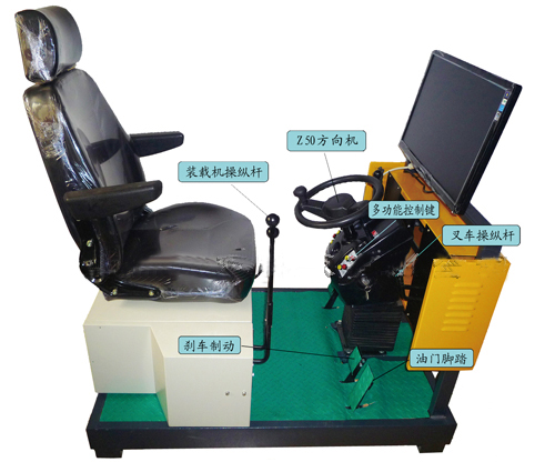 方向机:50装载机工程机械专用方向机 电脑配置:Intel奔腾双核E66002.3Ghz 内存2G 硬盘500G 性能特点: 装载机虚拟仿真驾驶平台是集合装载机与叉车一体的多功能模拟教学平台,因这二款工程机械设备在操作原理及操作部件上有很大的相似之处,可以实现装载机与叉车两款软件操作系统共用一台硬件设备进行训练学习,使得该教学设备在节省培训成本的同时,降低学校的投入成本,同时配合功能强大的软件操作内容及大量的理论教学文档,是装载机培训必备的教学设备。 1、装载机虚拟仿真驾驶平台的方向盘、油门、刹车、操作杆等机械系统装置,操作灵敏度高、有力度感、仿真性高。座椅位置合理,扶手、靠背、前后方位可调节,舒适感极佳。 2、24-28寸品牌高清1080P液晶显示器与高配置电脑主机为保障软件运行提供了良好的硬件环境。 3、装载机虚拟仿真驾驶平台包含真机操作注意事项、真机视频教学录像以及动漫形式的机械构造示意动画,并可在后期,继续对理论教学内容进行添加和更新。 4、硬件、软件设计采用与真机相同的操作机构,和真机操作有着相似的操作真实感。系统软件中具有机器金属反光效果、阴影效果,加上倒车镜与机械运行声音等,使得整个操作画面更加形象、逼真。 5、软件采用逼真的驾驶室视角和固定的侧面第三人称视角,模仿真机,从根本上解决了因视角缺陷而造成的操作失误。 6、添加了丰富的场景元素,逼真再现了各种工地的工作环境,例如:完成装车任务后,货车自动开走,叉车在仓库内货架堆放、移库倒桩等,给人一种身临其境的感觉。 多样化的操作课题 7、装载机虚拟仿真驾驶平台设立了各式各样的操作课题,并对难以掌握的训练科目(装载机上下板、地面找平、公路剥土、叉车货架堆放、货物移库、限道行驶等)采用不同的课题表现方式进行操作练习。 8、软件中增加大量的错误操作提示(内容包括文字提示、红色警戒提示等),帮助学员及时纠正违规操作和错误动作。像真车一样设置了速度档位调节,满足了不同学习阶段的学员需求,使软件更加人性化。 9、场景教学中的所有课题全部采用秒表计时,保证每个课题的学习都能按照一定的时间进行,使学员有充足合理的模拟训练时间,更好地掌握各种操作技巧、技能和动作要领。