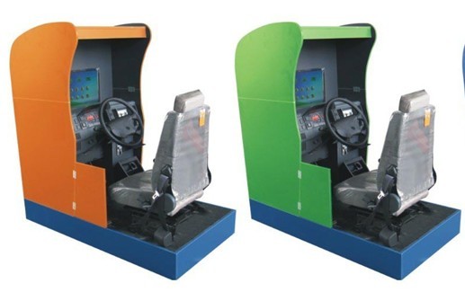 驾驶模拟器座舱 本驾驶模拟器座舱采用真车操作部件,为学员提供一个真车的操作环境。由于采用了当前最新的科技成果,它可以在操作感、仪表显示、听觉和视觉上逼真地再现真车驾驶时的工作环境和场景。其提供的训练场景按中国道路的实际情况设计,可以分级设置,能训练学员的基本驾驶操作技术和处理紧急情况的应变能力。汽车驾驶模拟系统能使学员快速掌握驾驶理论知识和基本操作技能,使学员的驾驶座舱既可以独立使用,也可以通过数据通信单元与电脑主控台配合使用。座舱单独使用时,可以实现汽车驾驶教学与训练功能;与电脑主控台配合使用时,整个系统可以实现由老师监管任何一学员实时驾驶画面,并能将每个学员档案成绩打印等功能。 中央监控台 上海教学设备有限公司生产的中央监控台由高级计算机、 19″ 显示器、打印机、100M 网络交换机等组成。监控计算机可以监控任意一台模拟器,监视窗口将显示与被监视模拟器完全一样的画面,并实时图形显示其“五大”操作件——方向盘、离合器、脚制动、油门及手制动当前的状态;另外档位、喇叭、转向灯、点火开关等的状态也通过图示表示出来。监控计算机可以查看联网的每一台模拟器当前错误操作的明细情况,并将训练成绩进行打印(中学及劳技中心建议配备一台中央监控台。